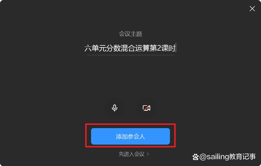 进入到“会议主题”设置对话框,输入会议主题,可设置麦克风、摄像头的开闭(进入会议后也可以设置)。