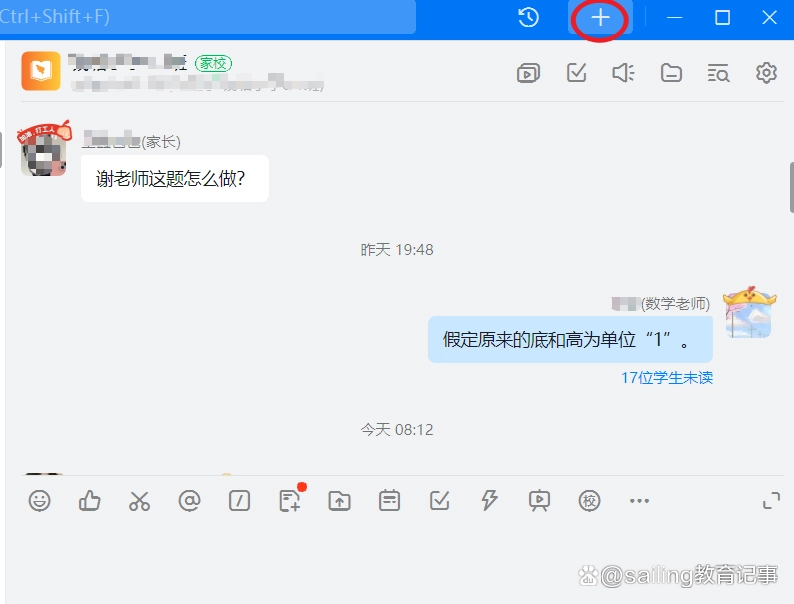 首先,打开电脑端的钉钉。单击顶部右上角的工具栏上“+”号工具按钮。