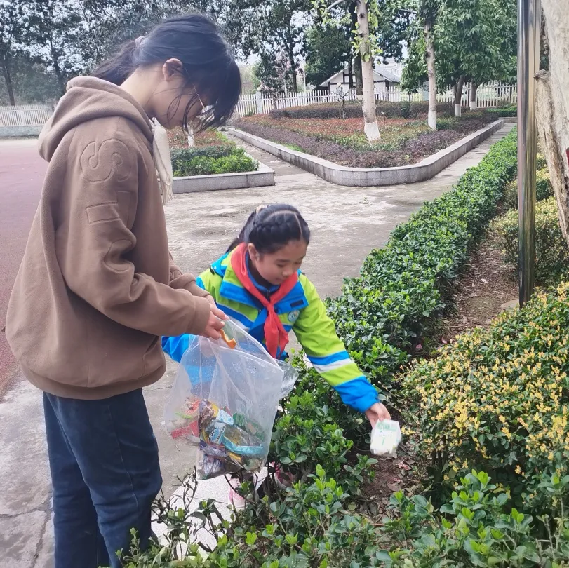 动员会上,小故事员向大家分享着雷锋的生平事迹和他无私奉献的精神,分享着自己对雷锋精神的理解和自己身边的雷锋式人物。学生们自发组成志愿者小组,孩子们在学校花坛、社区广场内捡拾垃圾,他们有的手拿扫帚和簸箕,有的提着垃圾袋,热情洋溢地投入到清整垃圾的活动中。这不仅让学生们体验到热爱劳动,保护家园的快乐,也让雷锋精神在社会实践中得到传承和发扬。