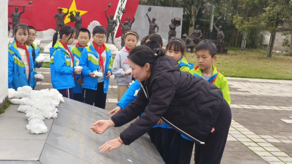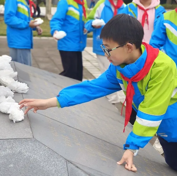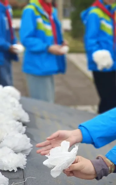 同学们用亲手折出的小白花,向先烈们表达无尽哀思与崇高敬意。