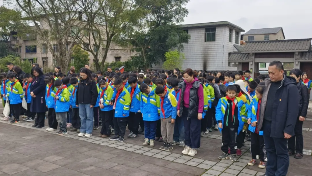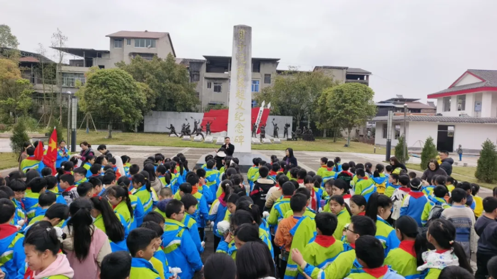 4月1日,在清明节即将来临之际,我校组织五年级全体师生、幼儿园部分师生、校级领导、行政成员和教师代表徒步前往金子沱武装起义纪念园,开展祭扫烈士园 缅怀革命情主题活动。
