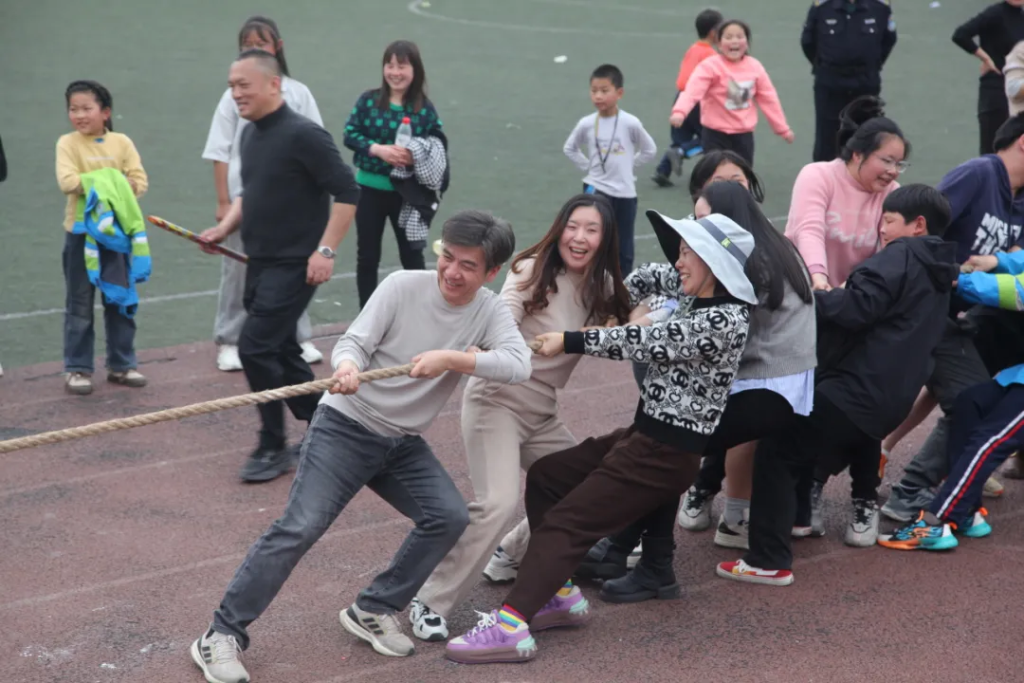 秉持“团结、合作、运动快乐的口号”,在学生运动会结束后,学校工会组织全体教职工也积极投身这场春日运动会中。